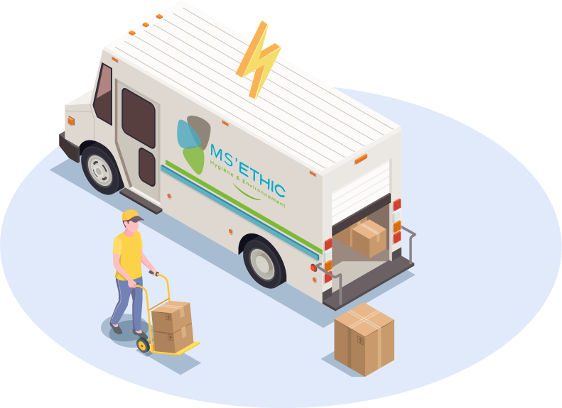 Nous livrons vos commandes sur site en utilisant des véhicules électriques pour les courtes distances. Cela permet de réduire notre empreinte carbone et de contribuer à la lutte contre le changement climatique.